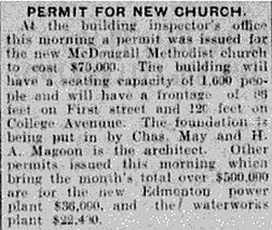 Since it's opening at the present building in November 1910, The McDougall United Church has been a place of worship as well as a community hub for political, arts, organized labor, and benevolent society gatherings. Let's not lose this vital piece of Edmonton Heritage.